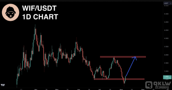 根據(jù) TradingView 的數(shù)據(jù)顯示,WIF 從8月5日的1.07美元低點上漲了66%。在8月7日的交易中,WIF 價格達到了1.77美元的盤中高點。這一價格反彈引起了市場的廣泛關(guān)注。
