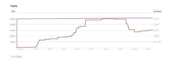 初始分配中,98.55%的Tokens通過工作量證明(PoW)挖出,剩下的1.45%由開發(fā)團(tuán)隊(duì)持有。