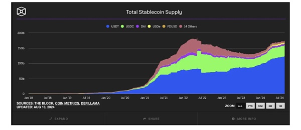 穩(wěn)定幣增長:2024年穩(wěn)定幣發(fā)行量持續(xù)上升,表明市場需求依然強(qiáng)勁。