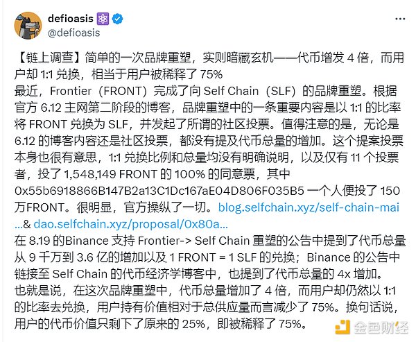 FRONT改名SLF增發(fā)4倍 Tokens置換不公引熱議