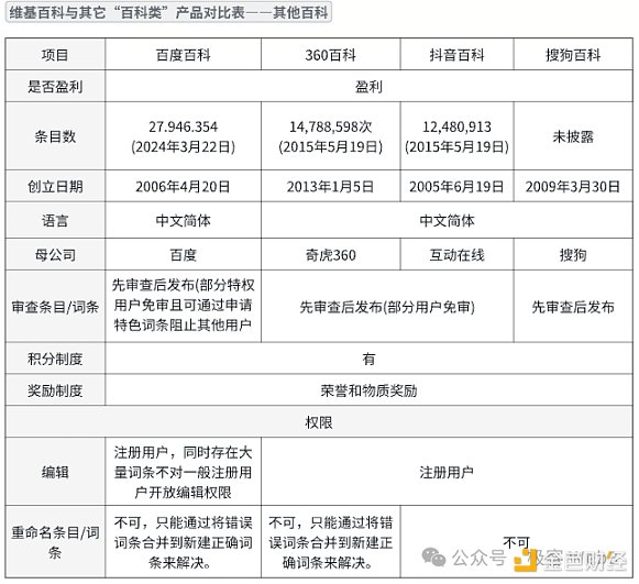 維基百科與其它「百科類」產(chǎn)品對(duì)比表