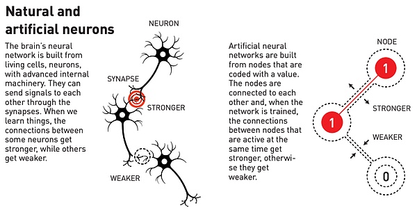 生物神經元之間信號的強弱,和神經網絡節點之間強弱的類比。
