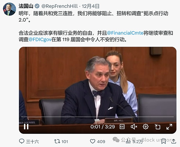 這應該是一份非政治性的聲明。美國貨幣監理署(OCC)已發布指導意見,稱其不允許對從事合法商業活動的企業進行廣泛的、有針對性的分類歧視。