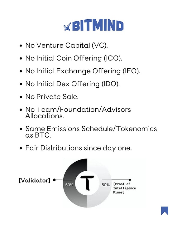 Bittensor以公平啟動的方式開始,沒有預挖的TAOTokens或*I*C*O。目前,網絡每天生成7,200個TAO,每個區塊生成1個TAO,區塊大約每12秒產生一個。Tokens總供應量上限設定為2100萬,遵循類似Bitcoin的程序化發行計劃。