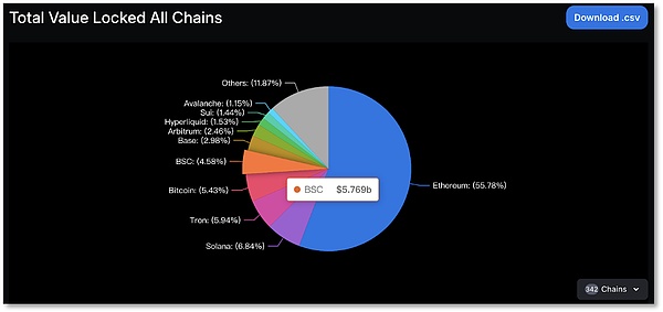 當Ethereum創新應用減少而越來越看重效率時,當Solana靠Meme幣從死地而生時,BNBChain則在過去一年持續增強可擴展性的目標下完成了從速率提高、協議豐富到體驗升級的變革,隨之起勢的是鏈上鎖倉價值(TVL)的大幅增長。