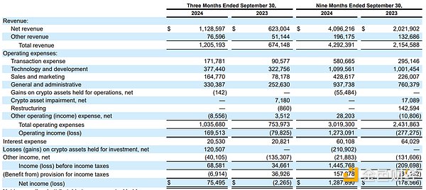 可以看到,2023年Coinbase的運營費用(研發、管理、銷售費用以及轉賬費用)平均每季度在6億美金以上,這基本相當于全部的營收,凈利率接近0;在2024年隨著行情爆發,其凈利率有了不少的好轉,但凈利率仍不足30%。