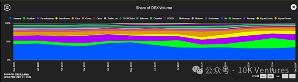 但dex/cextradingvolume可能有一定的天花板。這是因為Blockchain世界的大額交易量依舊是來源于BTC/ETH/SOL/XRP等主流幣,而主流幣的交易量和最好交易深度依舊在CEX中。但正如回答whycrypto的答案——Crypto最大的作用就是利用token來incentive中長尾用戶/項目方。在鏈上交易量近期較大的都是meme,而這相對于主流幣而言就是中長尾項目方。