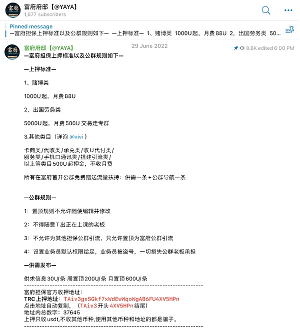 近日,演員王星被騙至緬甸的事件在網(wǎng)絡(luò)上引發(fā)廣泛關(guān)注,公眾對案件背后的細(xì)節(jié)充滿好奇。慢霧安全團(tuán)隊注意到,一份聊天記錄截圖在社交媒體上廣泛流傳,截圖中的群名為“富府專群需方上押14000u”,截圖中提到,王星已上車,而所謂的擔(dān)保費(fèi)用為14,000USDT,并附有一個用于收取擔(dān)保費(fèi)用的Crypto地址:TAiv3gxSGkf7xWdEwWqoWgAB6FU4XV5HPn。事情的真相是不是真如圖那樣呢?