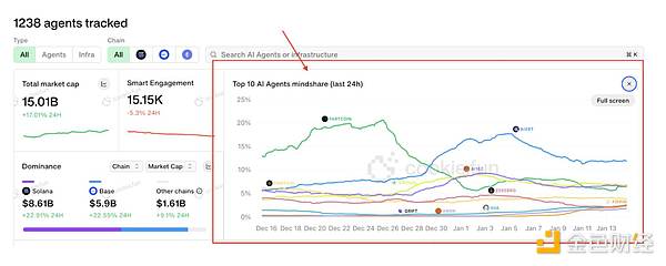 涵蓋了AIAgents交易量、價格、估值、持有者統(tǒng)計數(shù)據(jù)等重要指標(biāo),幫助用戶每天快速獲取市場概況。
