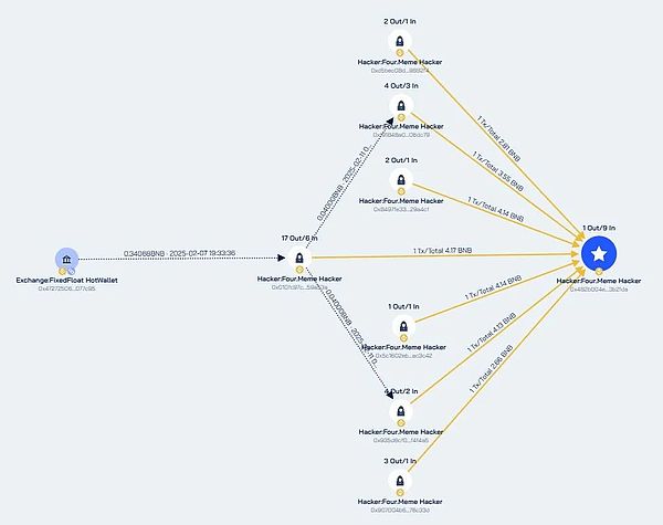 據BeosinKYT分析,Four.Meme被盜取資金的流向如下圖所示: