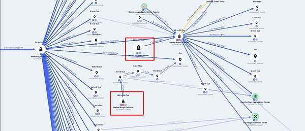 雖然Bybit采用了多簽機(jī)制,但多個(gè)簽名方依賴于相同的基礎(chǔ)設(shè)施和驗(yàn)證流程,一旦其中一個(gè)環(huán)節(jié)被攻破,整個(gè)安全體系即被突破。攻擊者只需攻破一個(gè)簽名者的設(shè)備,即可偽造交易并獲取足夠的簽名權(quán)限。被盜資金*洗*錢路徑與關(guān)鍵節(jié)點(diǎn)突破