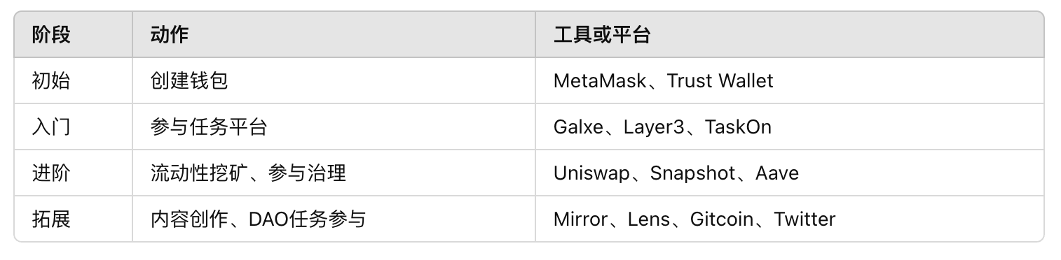 參與平臺如 Galxe、TaskOn、Layer3 等;