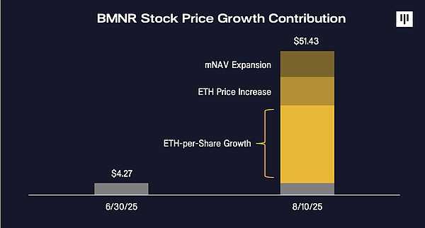 唯一的原因是:股民相信通過 BMNR 股票獲得的“0.01ETH”,最終會比直接持有 0.01ETH 更有價(jià)值, 也就是通過持有BMNR股票不僅直接可以獲得其代表的ETH份額,還可能獲得ETH本位的增值。