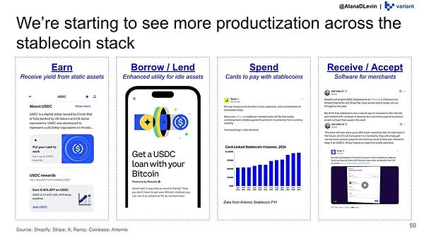 這不僅反映了需求的強勁,也說明穩定幣已不再只是“交易的輔助工具”,而正在成為實實在在的金融基礎設施。從支付、借貸協議、交易平臺,到跨境匯款和財富存儲,穩定幣正在滲透到越來越廣的產品場景之中。可以預見的是,穩定幣的“創造→積累→使用”這條鏈路,已經成為下一輪創業與產品創新的主戰場。