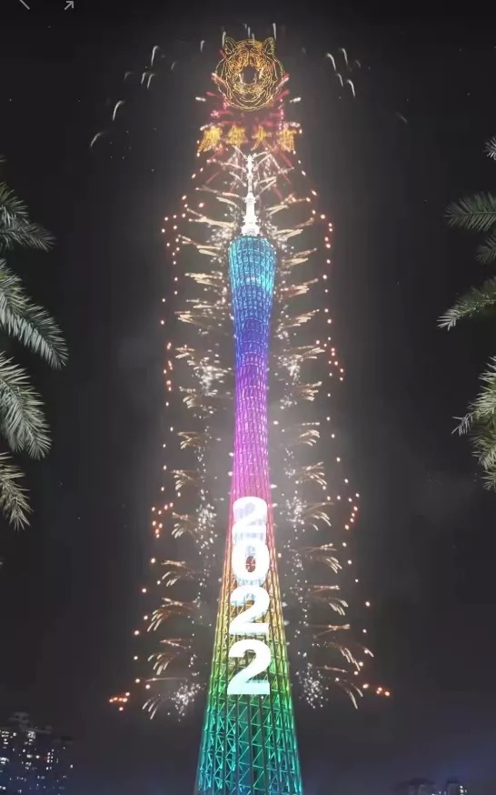 除夕夜,廣州塔打造了虎年新春AR燈光秀,首次實(shí)現(xiàn)了與澳門塔隔空“云”上聯(lián)動(dòng),以流動(dòng)的光影和全新的視覺體驗(yàn)展示了雙塔的夢(mèng)幻變身,最后煙花綻放出現(xiàn)了恭賀新春的字樣,科技感十足。