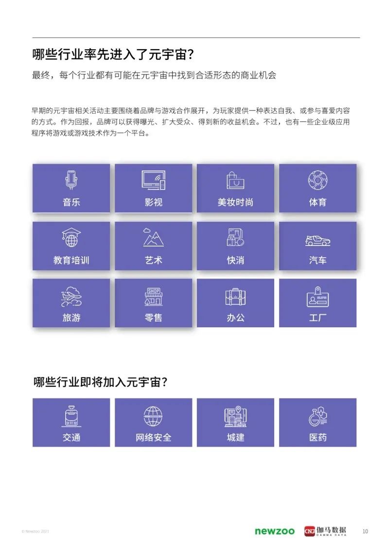 影視、音樂、快消、旅游等領(lǐng)域已經(jīng)率先進(jìn)入元宇宙,交通、網(wǎng)絡(luò)安全、城建、醫(yī)藥等即將進(jìn)入。元宇宙將成為游戲發(fā)展的下一階段——從游戲即服務(wù)(Games-as-a-Service)到游戲即平臺(tái)(Games-as-a-Platform),全球和cn的用戶對(duì)元宇宙的認(rèn)識(shí)有所差異(報(bào)告中有全球和cn用戶調(diào)研),三大障礙阻礙元宇宙產(chǎn)業(yè)的發(fā)展。