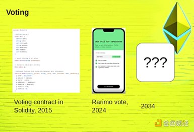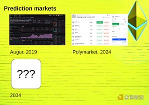 Vitalik表示,過去10年內Blockchain的相關用例變化不大,集中于穩定幣、金融衍生品、Decentralization交易所和預測市場等,所以需要討論未來用例。他在2014年談到了Decentralization交易所和預測市場(現在熱門預測市場Polymarket上成本相較之前降低了很多),不過沒有預測到NFT的火熱。